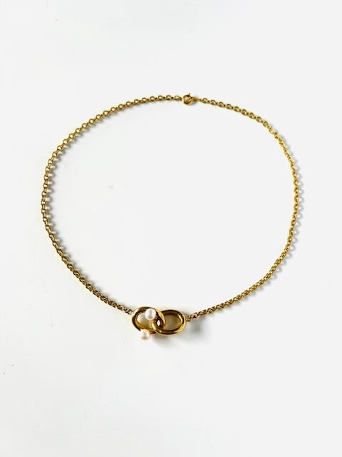 細胞「cell」のフォルムからインスピレーションを受けてクリエイションしたネックレス、ほどよくボリュームのあるチェーンと淡水パールがアクセントの個性的なお品です。
