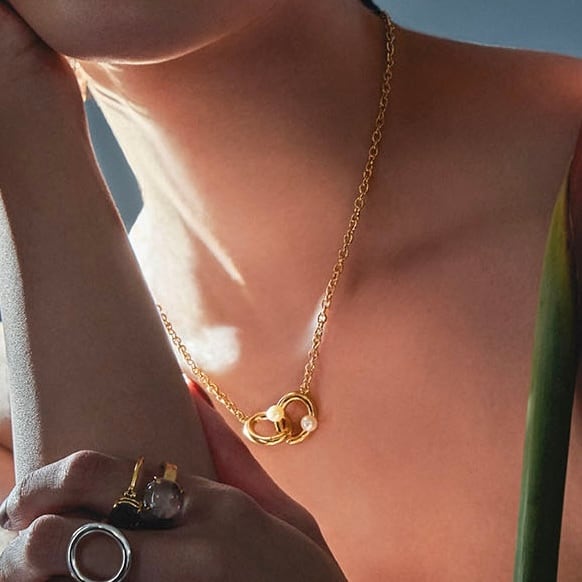 細胞「cell」のフォルムからインスピレーションを受けてクリエイションしたネックレス、ほどよくボリュームのあるチェーンと淡水パールがアクセントの個性的なお品です。