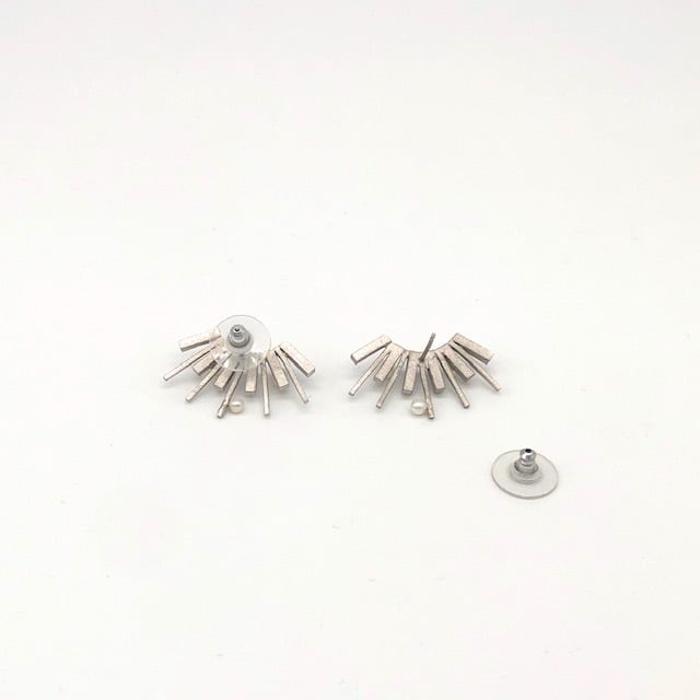 お耳に沿う様なデザイン、お着け頂くとフリンジの様な繊細なモチーフが華やかな女性らしさを演出します。普段小さめのピアスをお着けになってらっしゃる方にもサイズアップトライを楽しんで頂ける大きさになります。