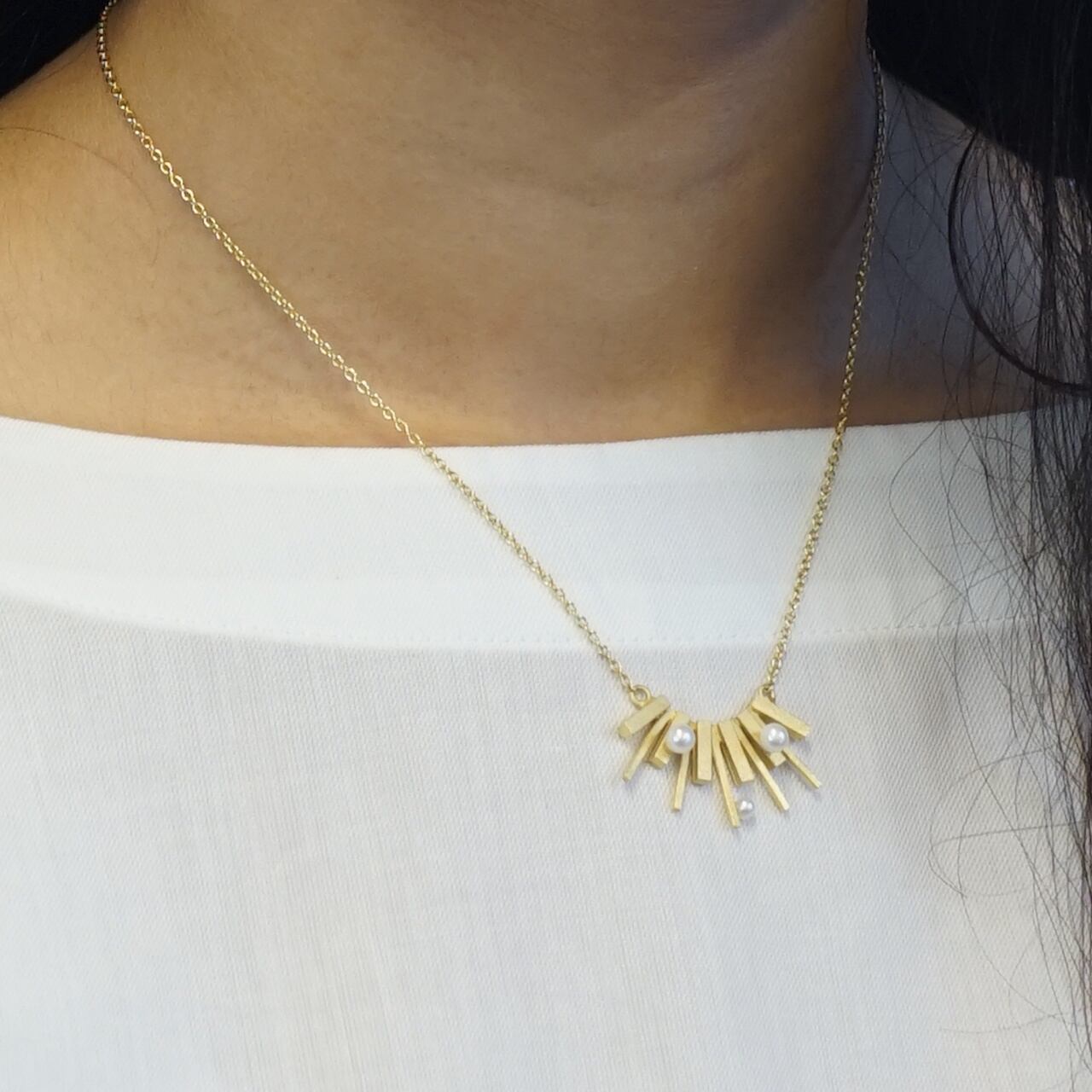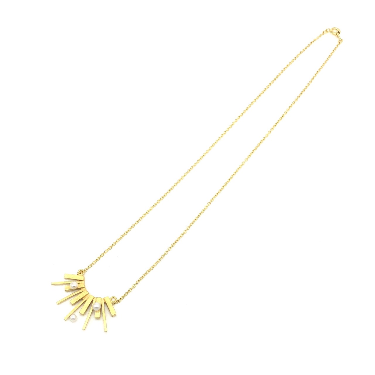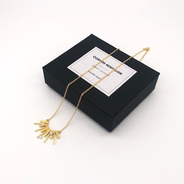 宇宙空間を彷徨うロシアの人工衛星「SPUTNIK」からインスピレーションを受けてクリエイションしたネックレス、淡水パールをあしらいました。