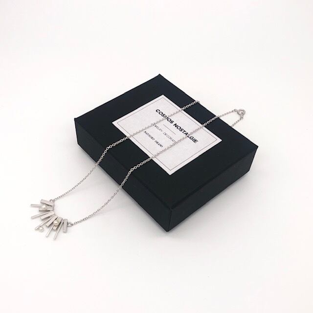 宇宙空間を彷徨う人工衛星「SPUTNIK」からインスピレーションを受けてクリエイションしたネックレス、淡水パールをあしらいました。