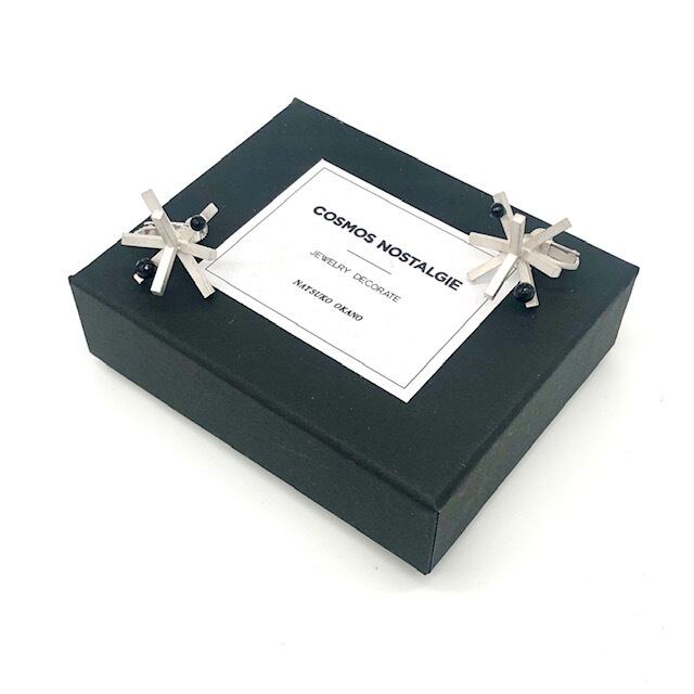 宇宙誕生「BIGBANG」からインスピレーションを受けてクリエイションしたイヤリング。オニキスをあしらいました。ミラーボールカットのオニキスをあしらいました。光の当たり具合によってキラリと輝きます。