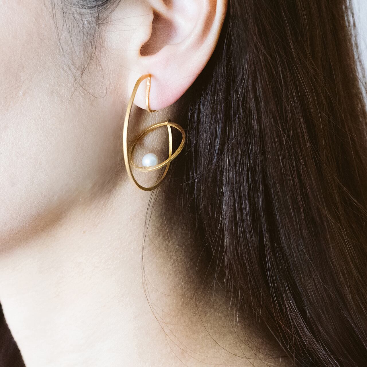 惑星の軌道「ORBIT」をイメージした変わりフープタイプのシングルイヤリングです。お手持ちの一粒パールのピアス、イヤカフなどと組み合わせてお楽しみ下さい。